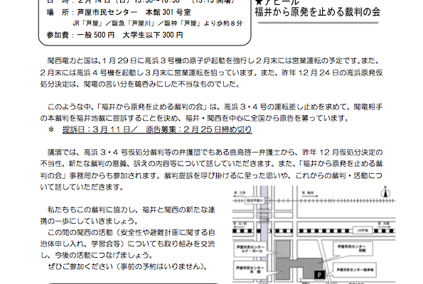 2・14 講演&交流集会-高浜原発3・4号運転差し止め提訴に向けて-