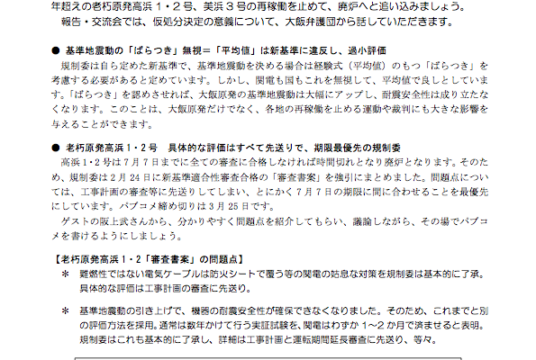 交流会:老朽原発高浜1・2号の延命を止めよう!パブコメ出そう