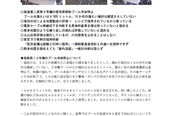• 火山灰再評価は検討しているが、川内原発を止めることはしない