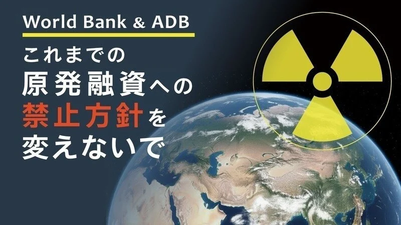 私たちは、世界銀行およびアジア開発銀行(ADB)が、原子力事業への融資や支援を解禁する方針であることに、強い懸念を有しています。